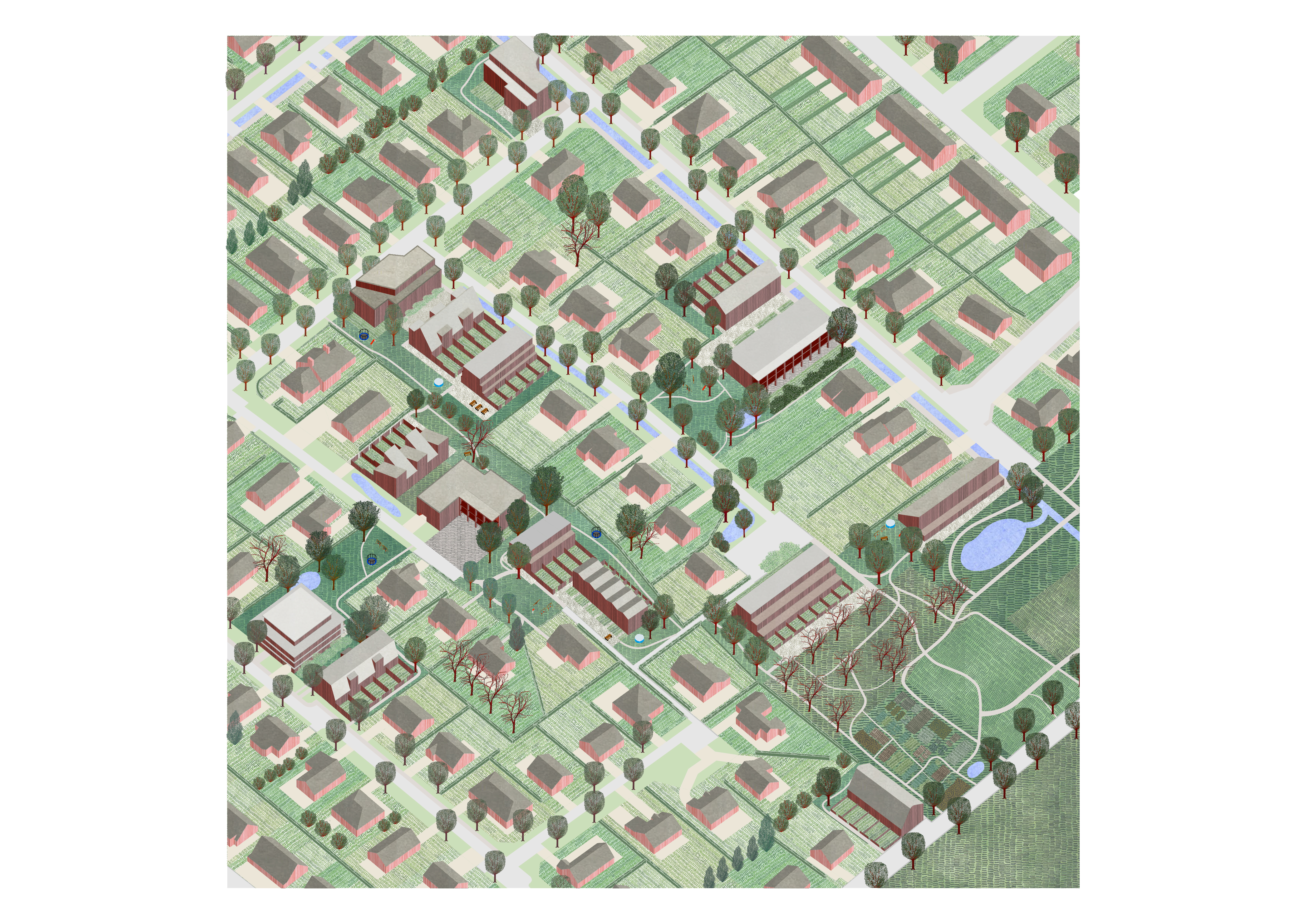 Bij de herontwikkeling van een wijk is het uiteraard belangrijk de gewenste ontwikkelingsrichting (niet de eindtoestand) voor de volledige wijk uit te tekenen. Waar willen we groen-blauwe structuren versterken of (terug) open leggen, waar zitten welke verdichtingsmogelijkheden, welke noden – aan nieuwe functies of voorzieningen, aan publieke ruimte – zijn er in de buurt? Omdat dit al deels werd onderzocht door BUUR, koos Bovenbouw er in deze beperkte opdracht voor om geen schets voor de volledige wijk te maken, maar in te zoomen op een 10 hectare groot generiek stuk van de verkaveling, om parallel aan de verkenning van de ruimtelijke structuur ook de vastgoeddynamiek in de vingers te krijgen.
